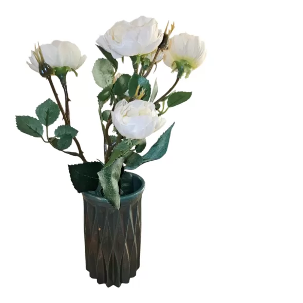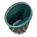 * 1 x Minivaza cu romburi verde inchis cu detalii sidefate, din ceramica handmade