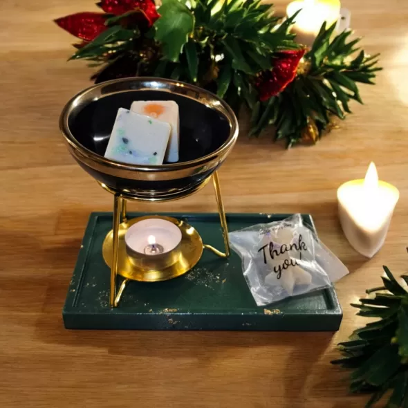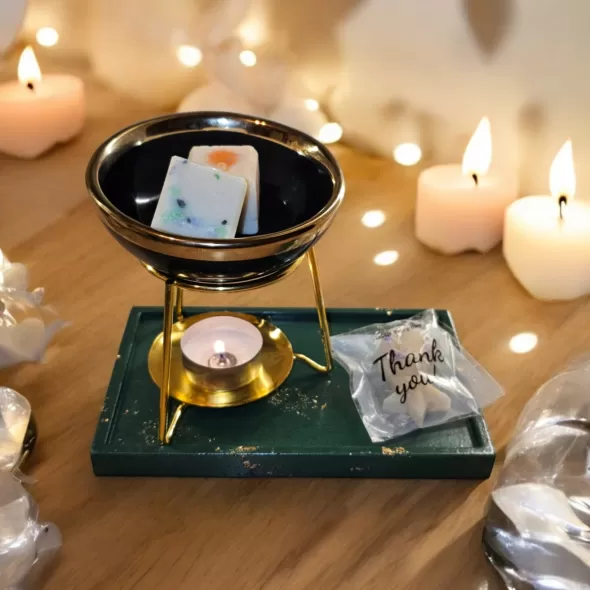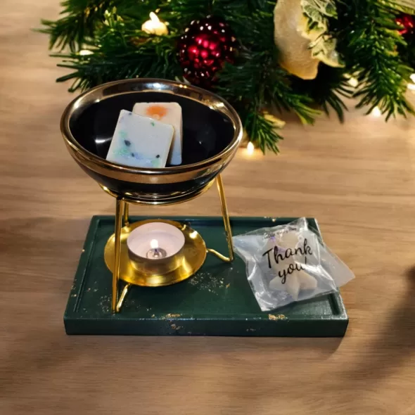 * 1 x Arzator negru-auriu pentru pastile parfumate din ceara (wax melts)