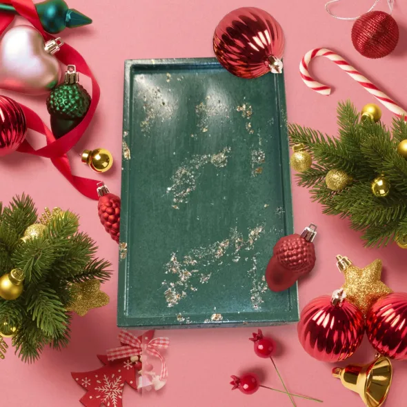 * 1 x Tavita decorativa dreptunghiulara verde cu detalii aurii din ceramica handmade