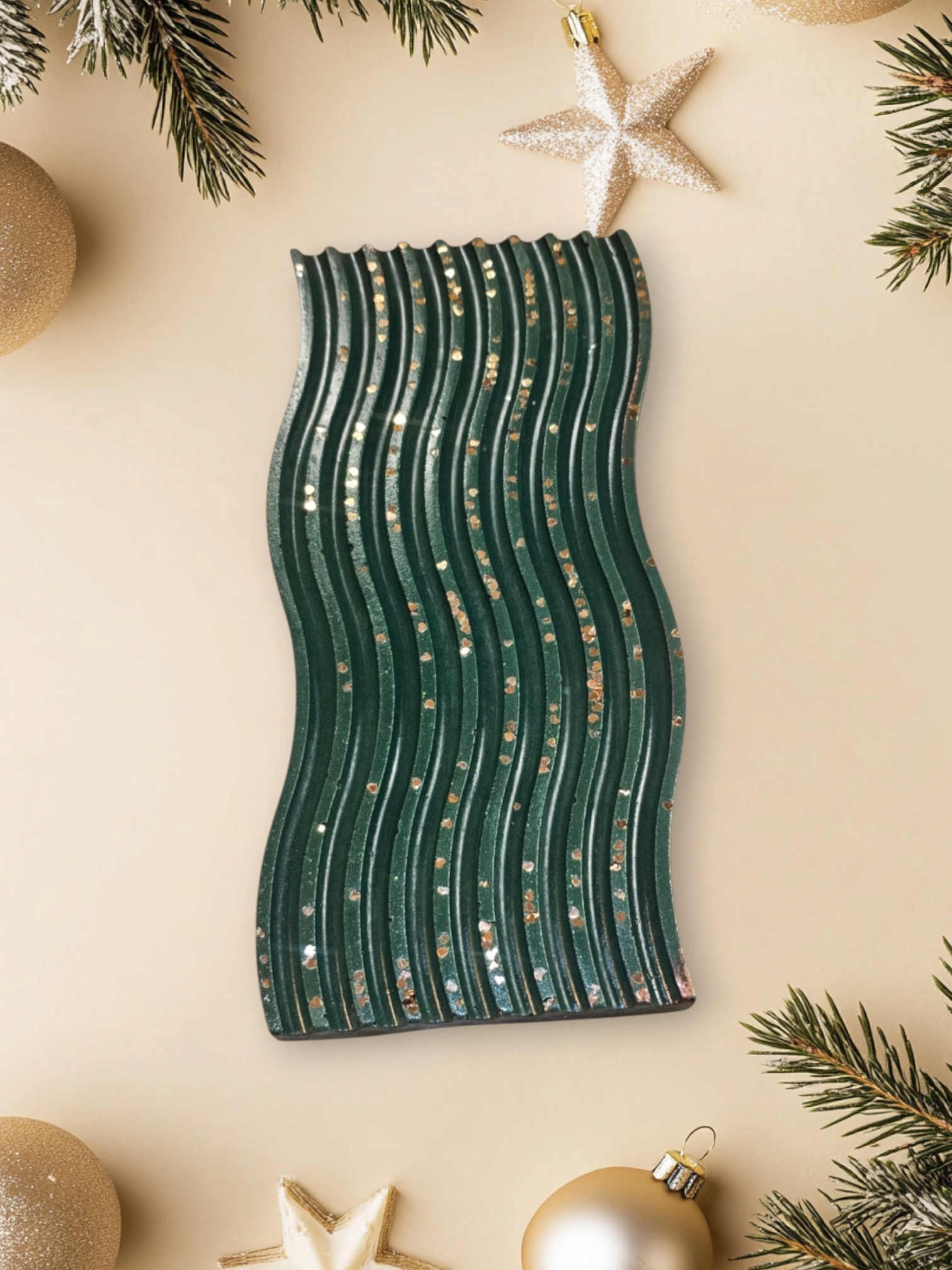 * 1 x Tava suport verde cu detalii aurii, din ceramica handmade