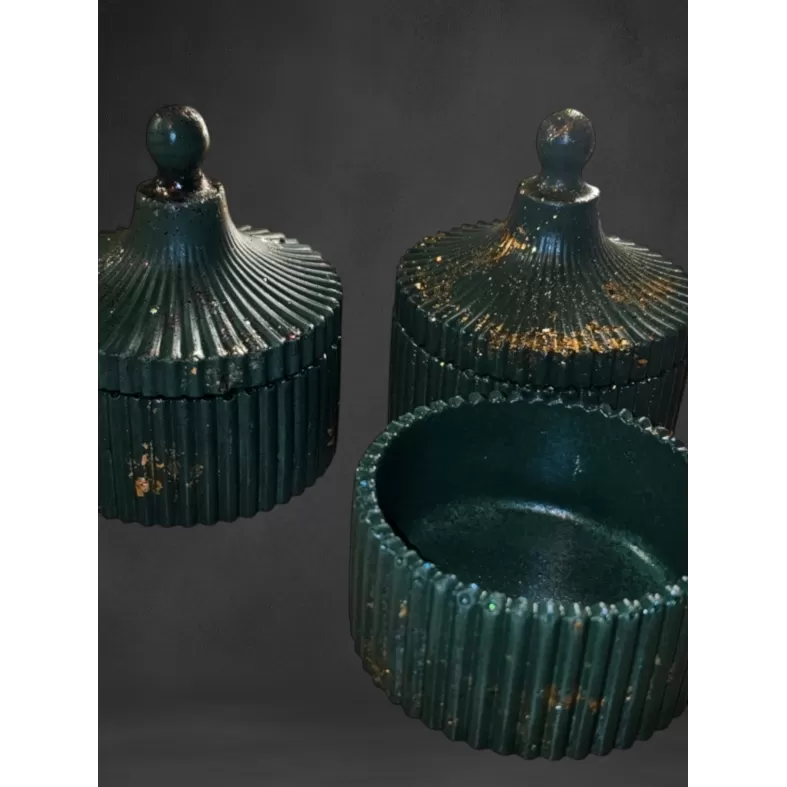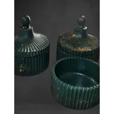 * 1 x Bol mic cu capac decorativ verde cu detalii aurii, din ceramica handmade