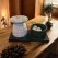 * 1 x Tava suport verde cu detalii aurii, din ceramica handmade
