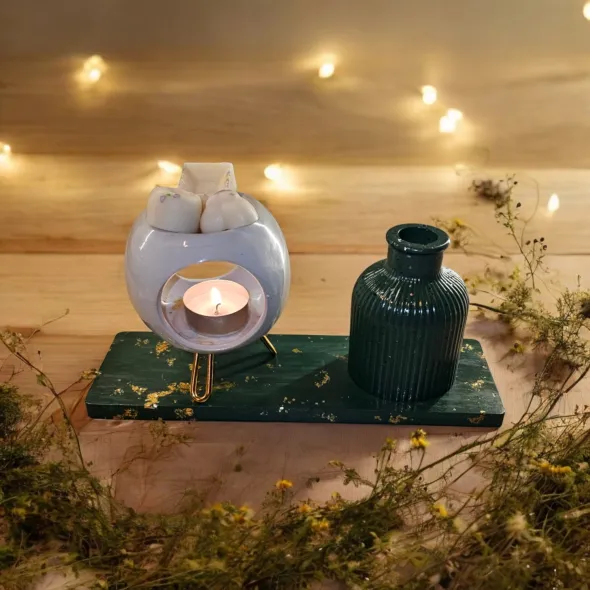 * 1 x Arzator alb-auriu pentru pastile parfumate din ceara (wax melts)