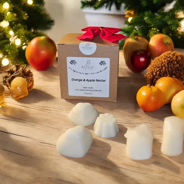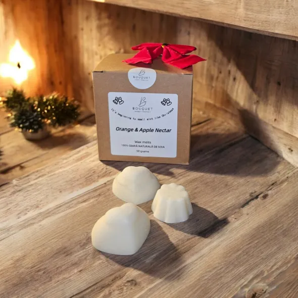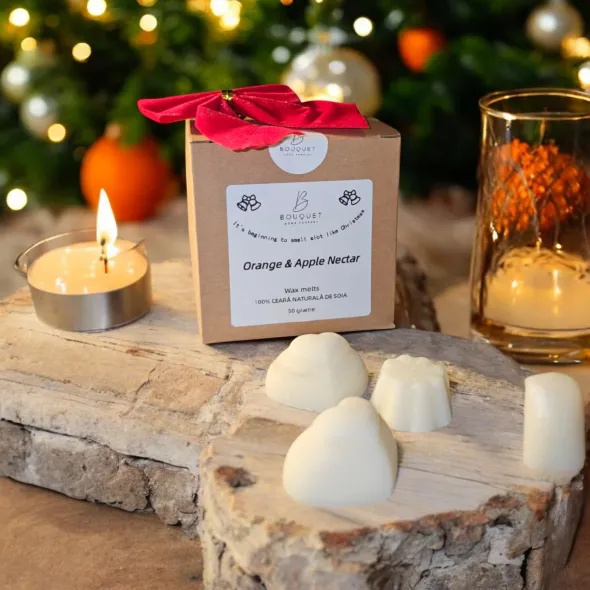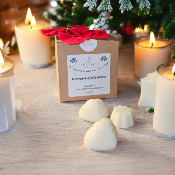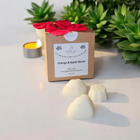 Wax melts din 100% ceara naturala de soia, ambalate in cutiuta de carton.