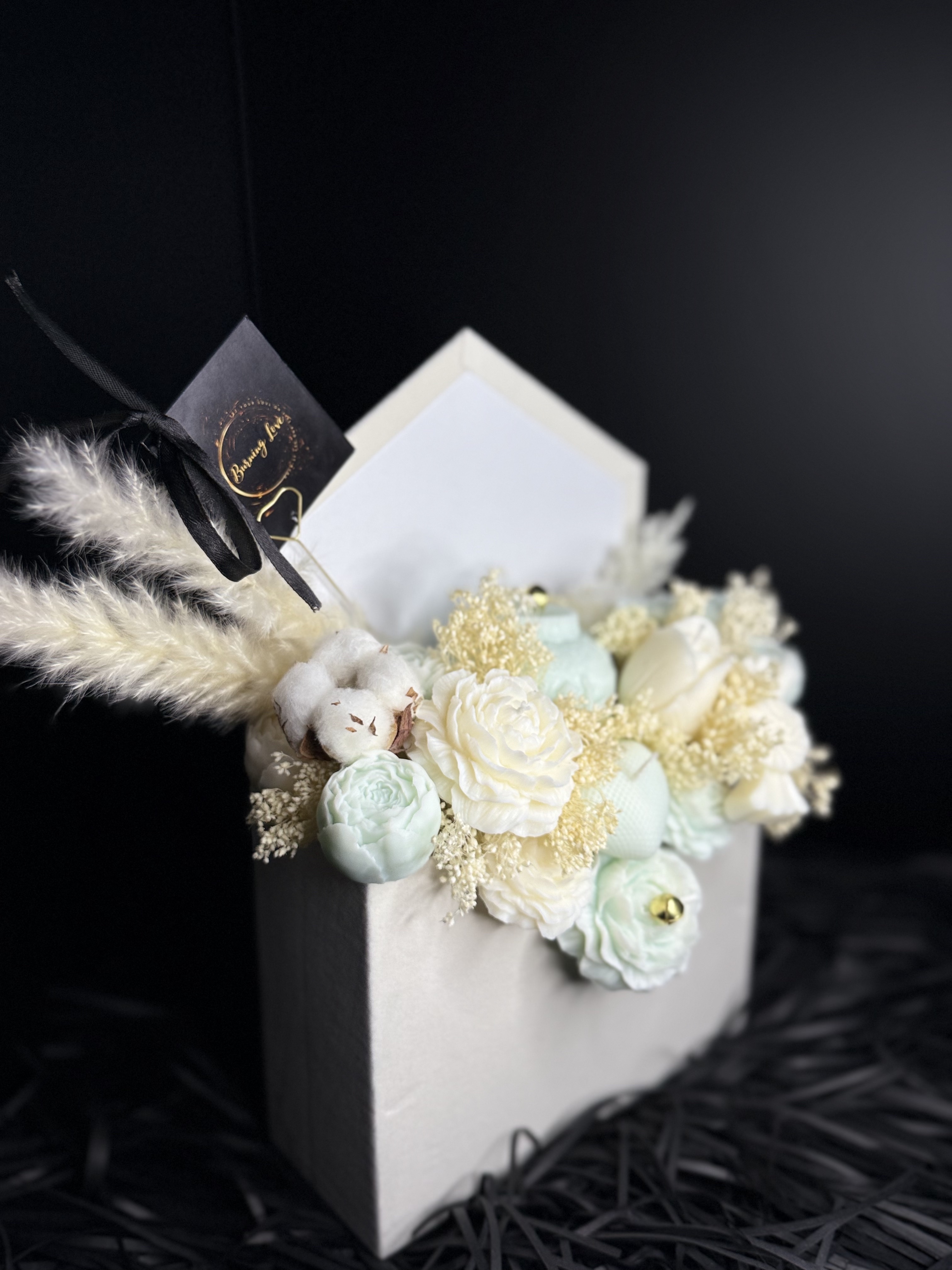 Acest aranjament este un cadou ideal pentru momente speciale, deoarece îmbină estetica florală cu semnificația simbolică a naturii. Fie că este oferit unei persoane dragi, unui profesor, unei mame sau unei colege, transmite emoție, grijă și apreciere. Spre deosebire de florile artificiale obișnuite, florile din ceară naturală au o prezență elegantă și sofisticată, transformându-se într-o amintire de durată.