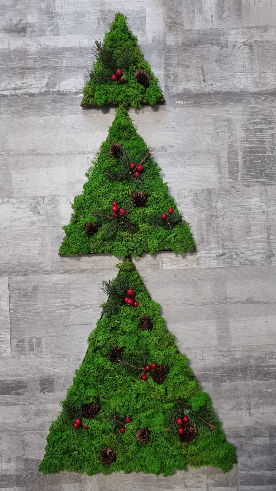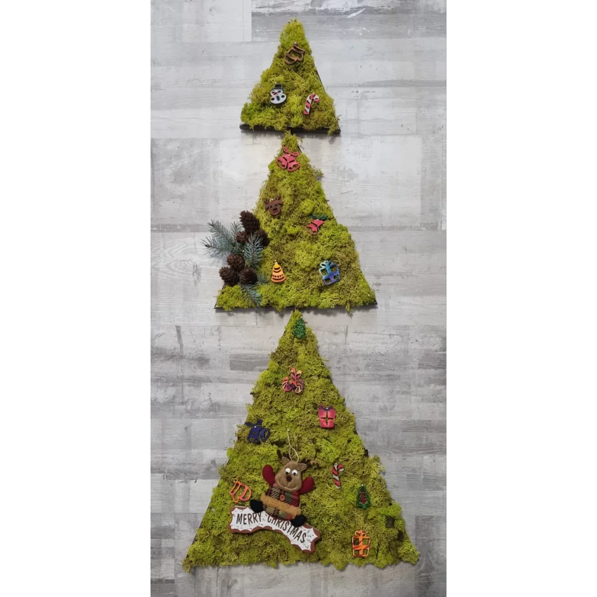 Decor all-season: după sărbători, cele trei piese se pot afișa separat sau în orice formă dorești ca trei tablouri moderne din licheni, adaptabile oricărui perete.
