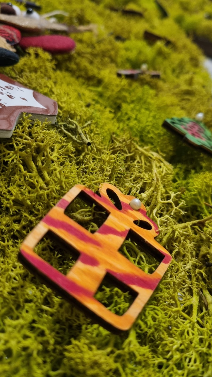 - Bradul deschis la culoare este ornat cu elemente de placaj de lemn lucrate manual. Bradul poate rămâne decorat ca în imagine sau poate fi decorat ca cel închis la culoare.