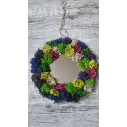 Adaugă un strop de natură și culoare în locuința ta cu această oglindă unicat, decorată manual cu licheni naturali stabilizați în nuanțe vibrante. Realizată cu grijă, piesa îmbină armonios culorile  verde, galben, mov, albastru, rosu, negru și bej  creând un efect vesel și modern, perfect pentru a revigora orice spațiu. Rama plină de texturi naturale evidențiază centrul oglinzii, transformând-o într-o piesă decorativă ideală pentru baie, hol, living, dormitor sau chiar birou.  Licheni naturali stabilizați  nu necesită îngrijire, își păstrează culoarea în timp  Produs handmade  fiecare piesă este unică  Design colorat și modern...
