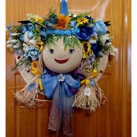 Decorațiune ușă primăvară, vară, toamnă. Realizată cu flori artificiale, pe comandă se pot face cu flori din toate culorile!