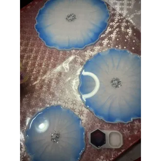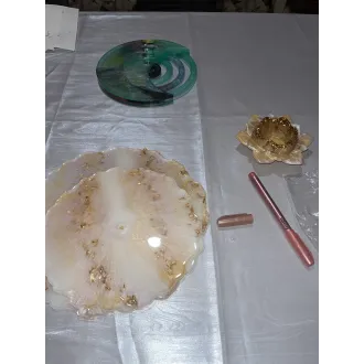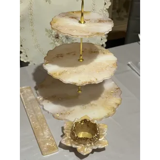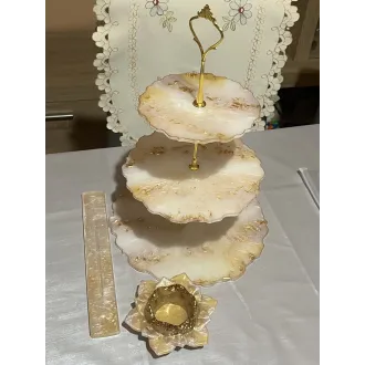 Adu un plus de stil și rafinament casei tale cu acest suport etajat realizat manual din rășină. Fiecare piesă este lucrată cu atenție la detalii, ceea ce o face unică și specială. Suportul este atât practic, cât și decorativ, fiind ideal pentru organizarea și expunerea deserturilor, bijuteriilor, lumânărilor, parfumurilor sau decorațiunilor sezoniere. Designul său elegant se potrivește perfect în living, baie, dormitor sau pe masa festivă. produs handmade piesă unicat decor modern și funcțional cadou inspirat pentru orice ocazie