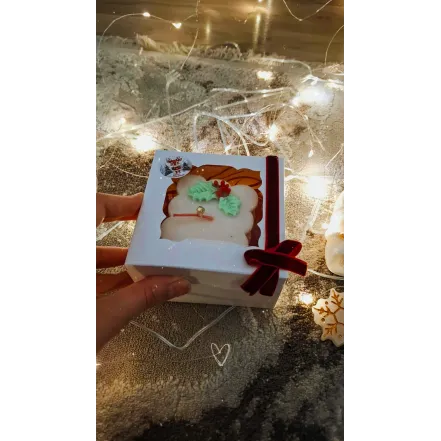 Lumanare bubble cu specific de Crăciun atat în ceea ce privește design-ul, cât și mirosul ce te poarta prin tolba cu povesti a moșului.  Primele doua rânduri de "bule" sunt albe, iar ultimul e roșu. Arde în peste 20 de ore. Vine cu ambalajul din imagine sau cu un altul pe care îl alege cumpărătorul.