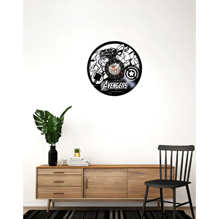 Fiecare detaliu al ceasului a fost decupat cu precizie, punând în valoare personajele tale preferate: **Hulk, Iron Man, Spider-Man și Captain America**. Designul original combină nostalgia discului de vinil cu forța și energia supereroilor, rezultând o piesă de decor cu adevărat spectaculoasă.