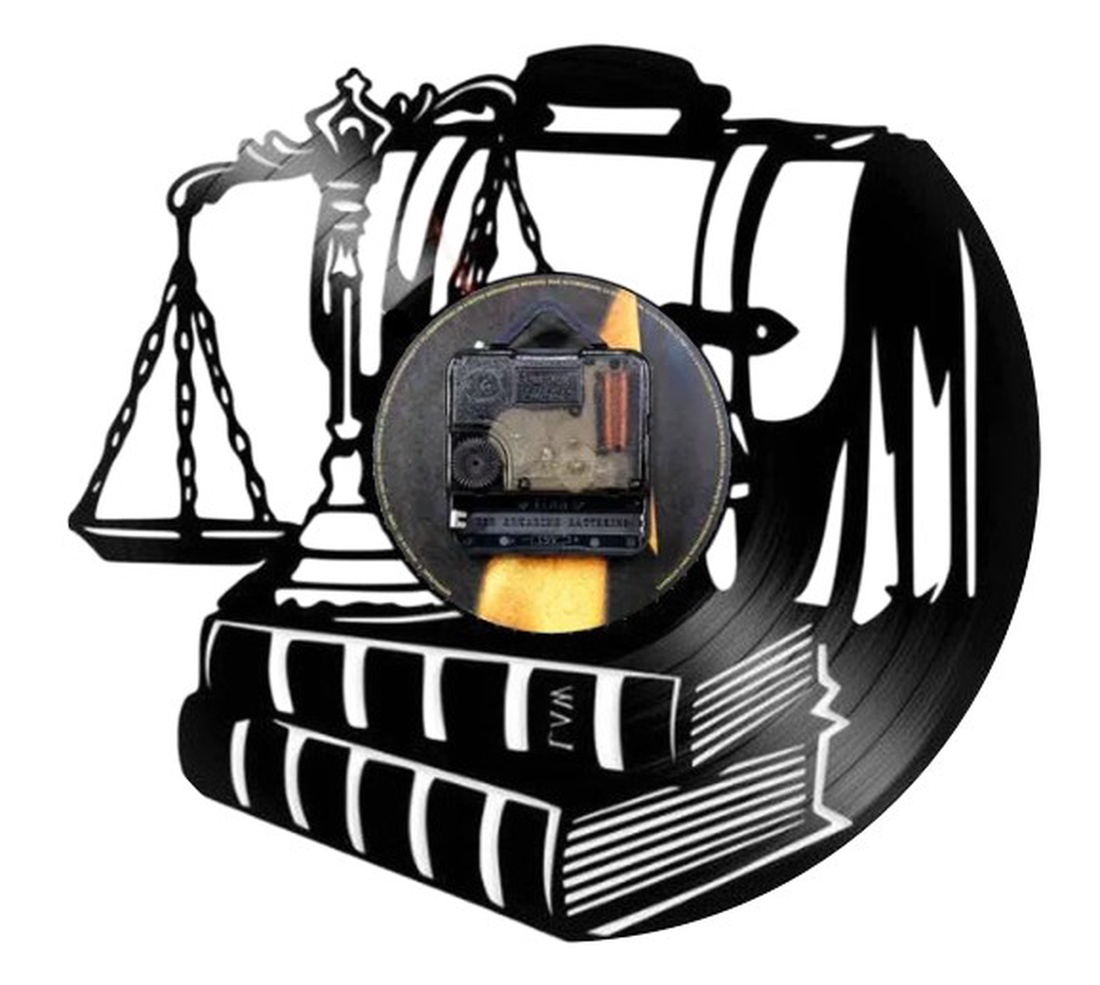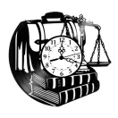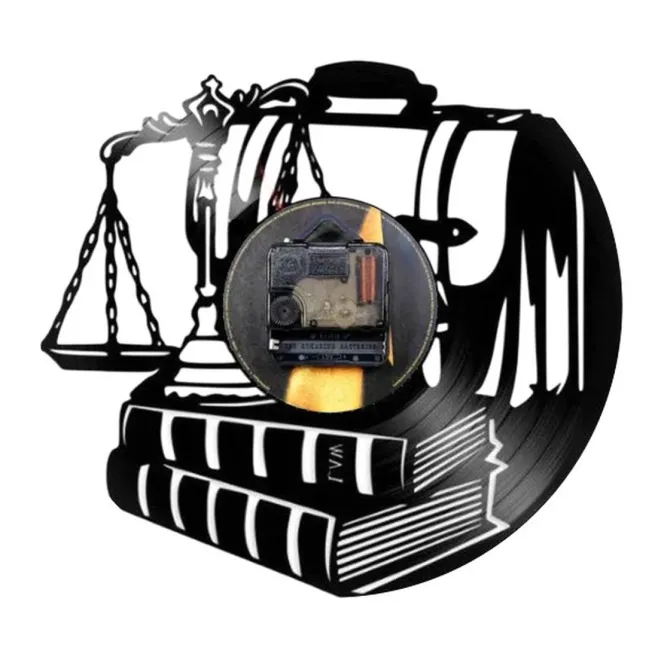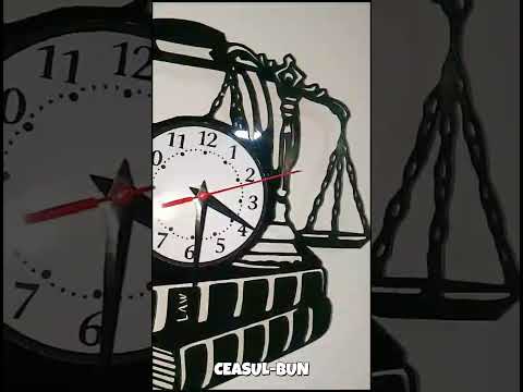 Acest remarcabil ceas de perete handmade este dedicat profesioniștilor din domeniul juridic și tuturor celor care apreciază simbolistica dreptății. Sculptat cu măiestrie dintr-un disc de vinil autentic, reprezintă o fuziune artistică între funcționalitate și simbolism legal.