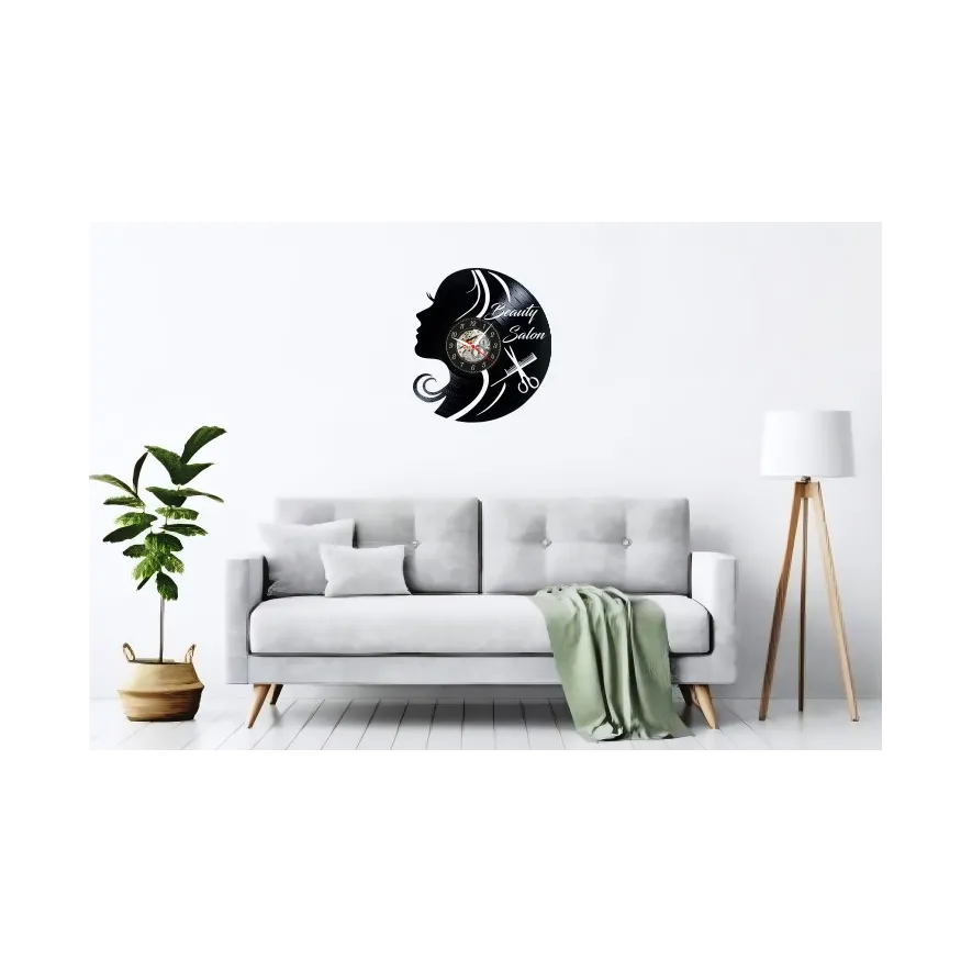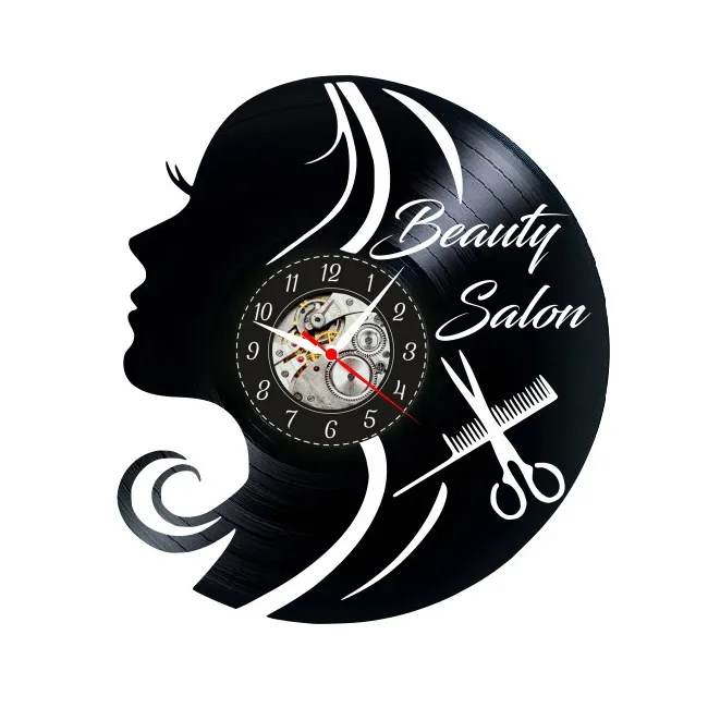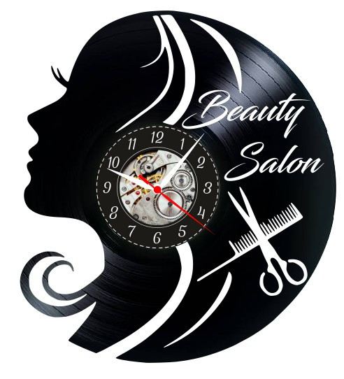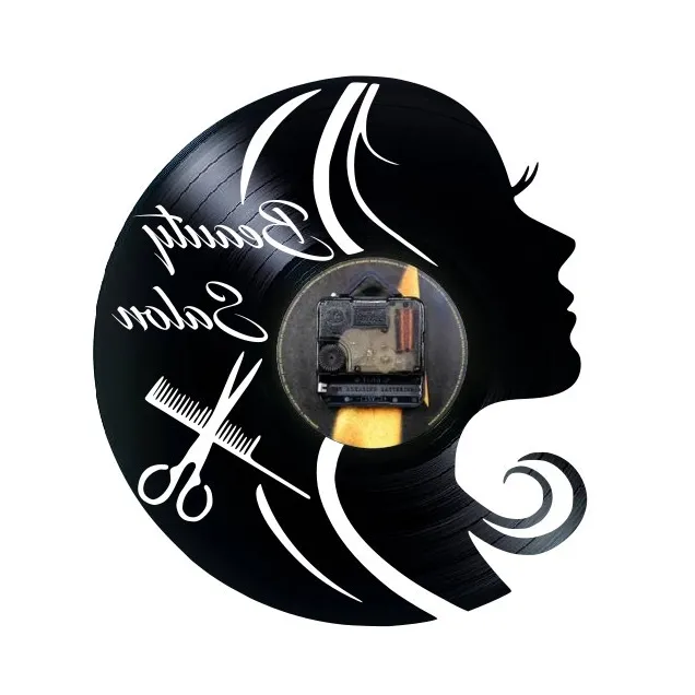 **Ceas de Perete din Disc Vinil – “Beauty Salon” – Lucrare Artizanală pentru Saloane**