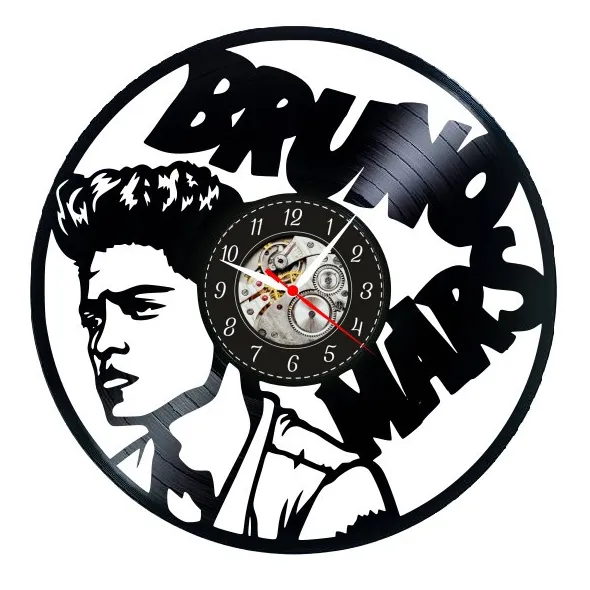 Vă prezentăm o creație artistică extraordinară pentru entuziaștii muzicii și fanii lui Bruno Mars: ceasul de perete Bruno Mars, sculptat minuțios dintr-un disc de vinil autentic.