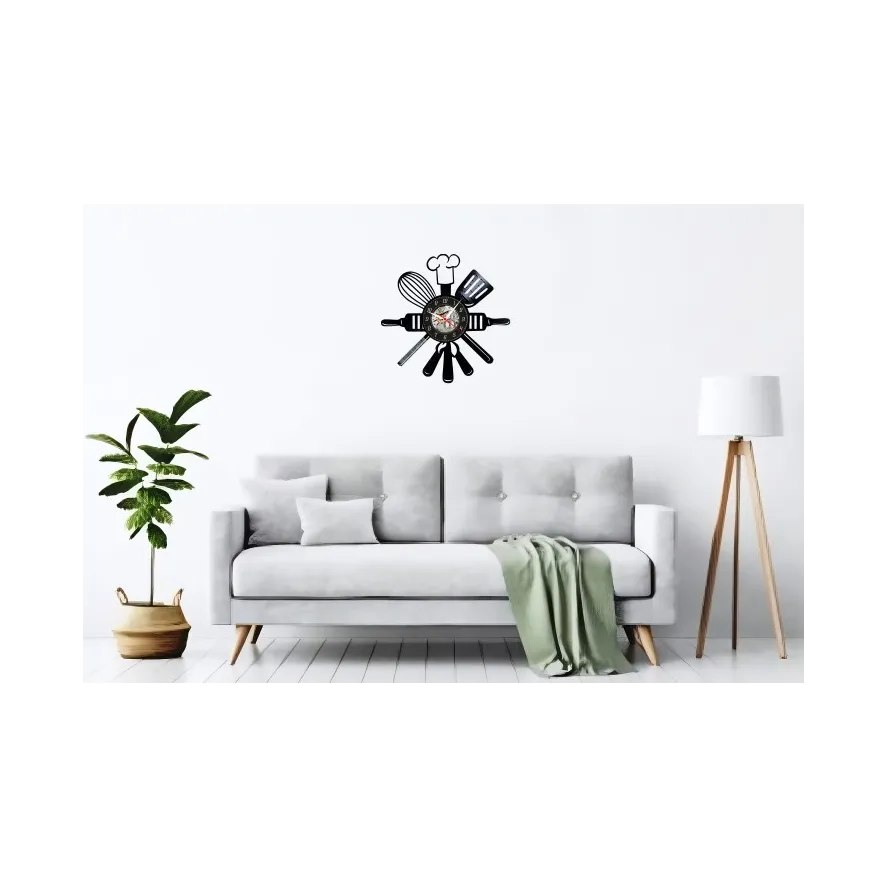 Ceas de Perete Handmade Bucătarul Șef - Ustensile Culinare pe Vinil