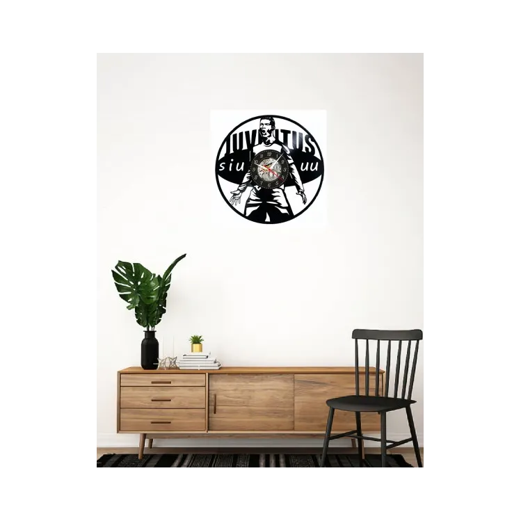 Imortalizează legendarul Cristiano Ronaldo în perioada sa de glorie la Juventus cu acest ceas de perete unic, creat manual dintr-un disc de vinil autentic! Fiecare detaliu este atent lucrat pentru a aduce omagiu unuia dintre cei mai mari fotbaliști ai tuturor timpurilor și impactului său asupra Bătrânei Doamne.