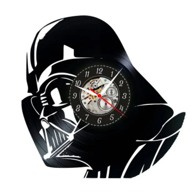 Vă prezentăm o piesă de colecție impresionantă pentru fanii universului Star Wars: ceasul de perete Darth Vader, sculptat cu măiestrie dintr-un disc de vinil autentic.