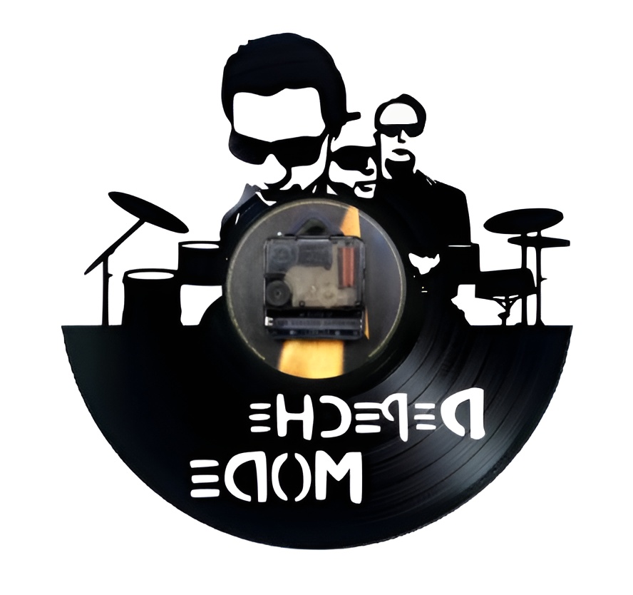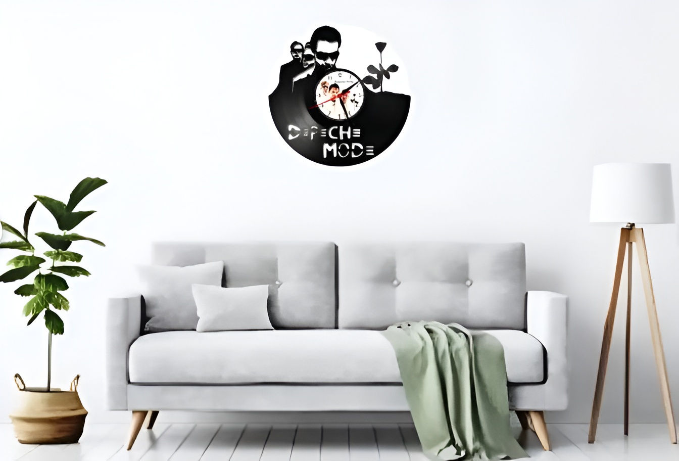 Acest ceas de perete cu tema "Depeche Mode" este o piesă unică, realizată dintr-un disc de vinil lucrat manual, aducând o notă vintage și originală în orice încăpere.