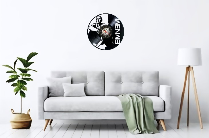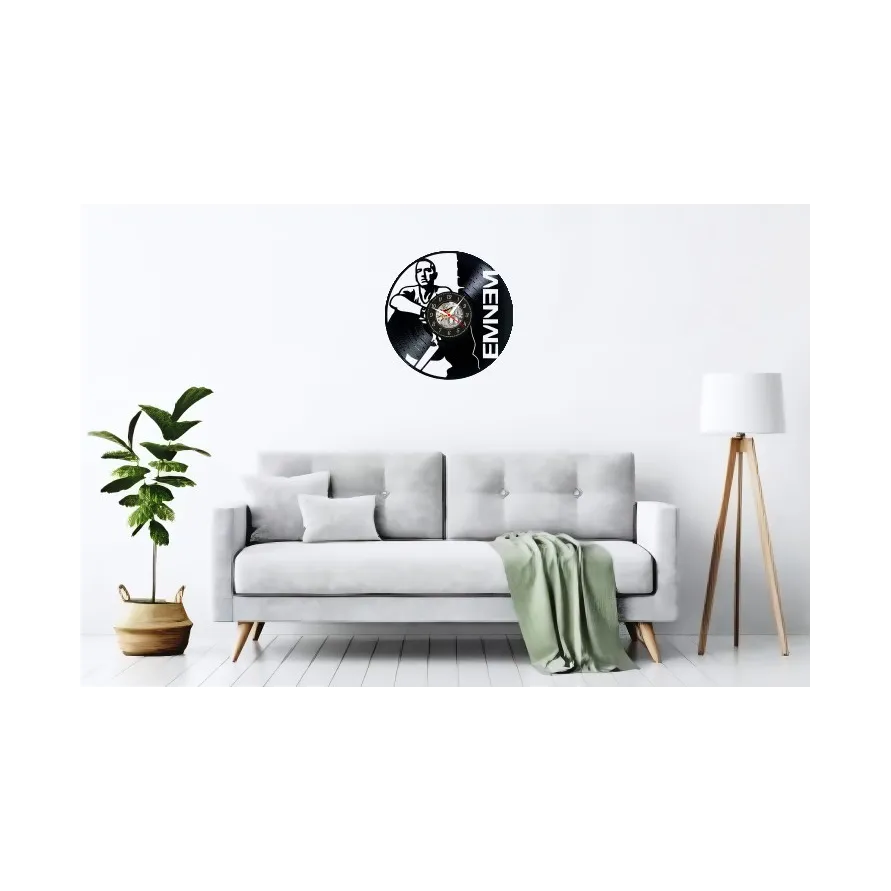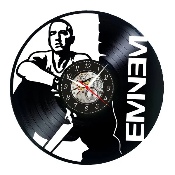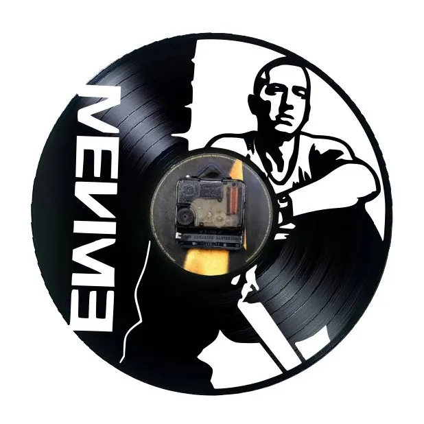Vă prezentăm o creație artistică remarcabilă pentru fanii muzicii hip-hop și admiratorii lui Eminem: ceasul de perete Eminem, sculptat cu măiestrie dintr-un disc de vinil autentic. Această impresionantă piesă decorativă transformă un disc de vinil clasic într-o operă de artă funcțională care celebrează unul dintre cei mai influenți artiști rap ai tuturor timpurilor.