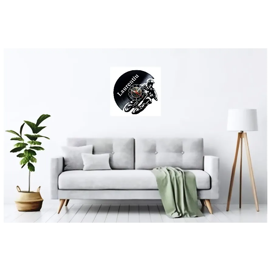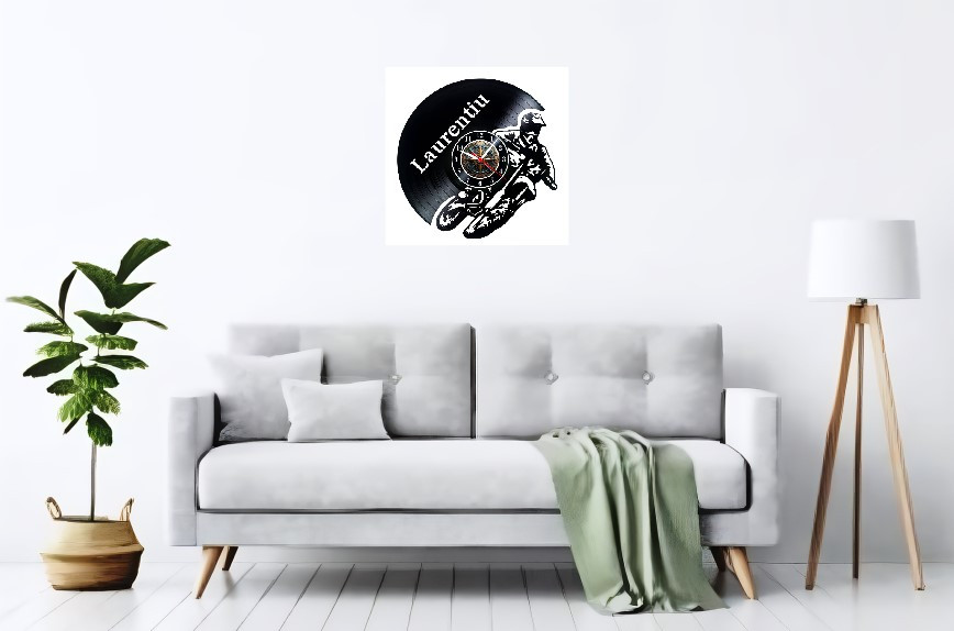 Un omagiu vibrant adus vitezei, curajului și creativității umane, acest ceas de perete este rodul muncii manuale pure. Fiecare formă, fiecare detaliu este sculptat cu migală, transformând un simplu disc de vinil reciclat într-o operă de artă dinamică ce celebrează spiritul neîmblânzit al motocrossului. Este piesa ideală pentru a aduce energia traseului, sunetul motorului și praful competiției direct în spațiul tău personal sau profesional.