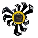 Această piesă spectaculoasă reinterpretează conceptul clasic al ceasului de perete, prezentând cifrele orare amplasate pe raze geometrice tridimensionale ce radiază dinspre centru, creând un efect vizual dinamic și captivant. Fiecare cifră se desprinde într-un unghi diferit, conferind ceasului un aspect sculptural care adaugă profunzime și caracter oricărui spațiu.