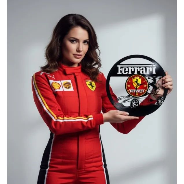 Un adevărat tribut adus ingineriei italienești de vârf, pasiunii nețărmurite și eleganței atemporale, acest ceas de perete transformă un simplu disc de vinil reciclat într-o capodoperă care celebrează spiritul Ferrari. Fiecare detaliu al acestei sculpturi funcționale este un strigăt de admirație pentru designul automotive, pentru moștenirea sportivă din Formula 1 și pentru arta prelucrării manuale. Este un obiect care capturează nu doar timpul, ci și esența vitezei, a luxului, a sunetului inconfundabil și a performanței absolute.