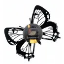 Discul de vinil negru, cu textura sa caracteristică, servește ca fundal perfect pentru silueta delicată a unui fluture, decupată cu măiestrie artistică. Aripile fluturelui se întind grațios pe suprafața discului, creând un contrast elegant între negrul lucios al vinilului și formele elaborate ale designului.