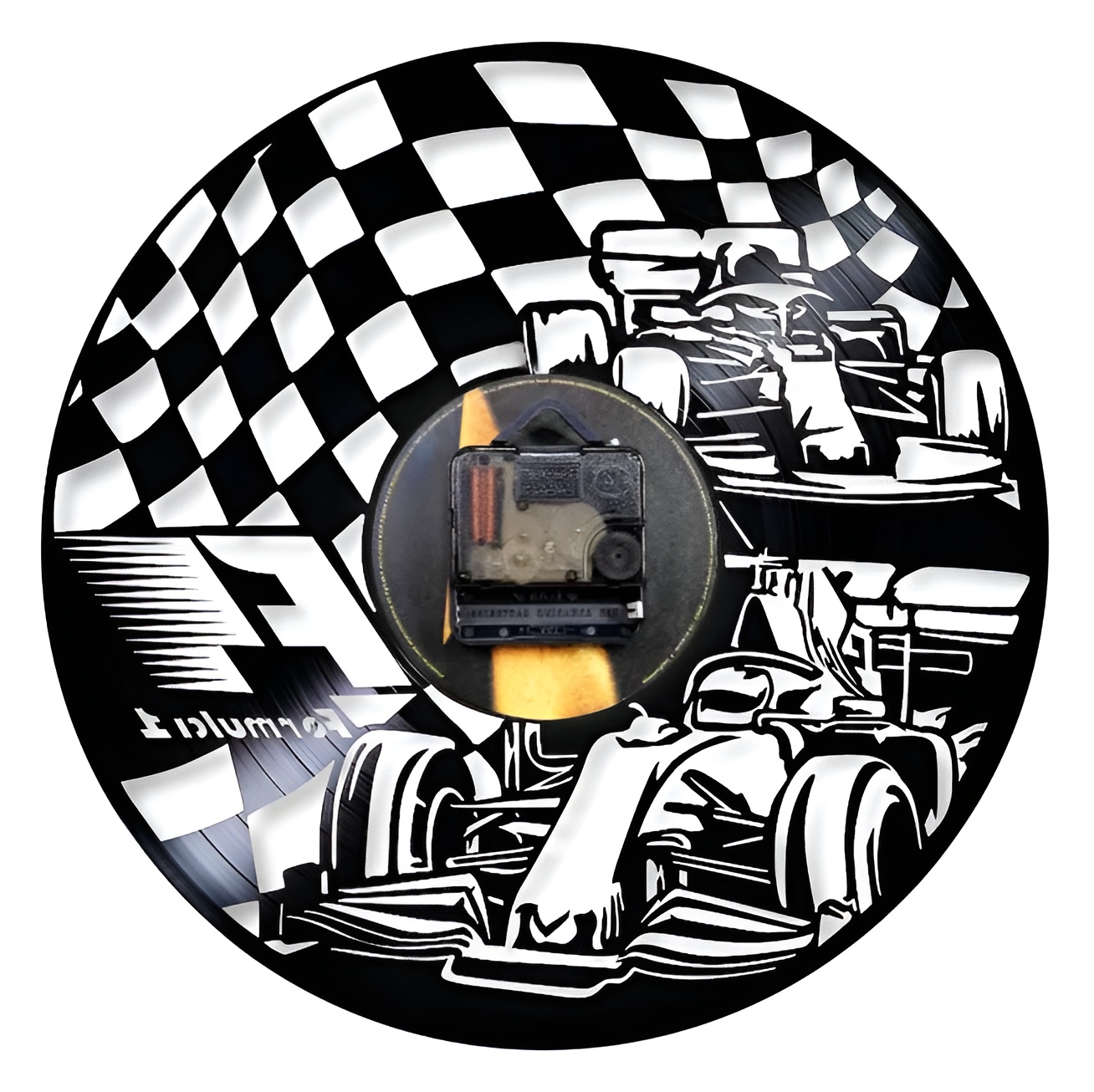 Inspirat de lumea fascinantă a Formula 1, acest ceas aduce împreună două universuri aparent opuse: designul retro al discului de vinil (o piesă de istorie analogică) și estetica contemporană a mecanismului precis. Rezultatul este o piesă unicat, cu personalitate puternică, care îți va transforma peretele într-un punct de atracție ce emană dinamism și stil.
