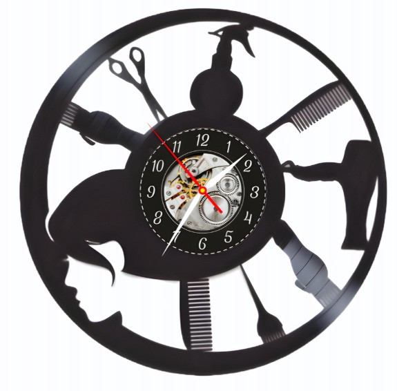 Descriere stilată cu umor de salon: Ceas de perete care face din fiecare minut o oportunitate de a fi în trend. Design decupat din vinil, plin de elemente emblematice: foarfecă deschisă ca pentru o idee spontană, pieptene, foehn, spray și silueta unei coafuri impecabile în profil. Totul încadrat de un mecanism cu rotițe vizibile – pentru că un hairstylist adevărat merge ceas, și la timp, și la detaliu.