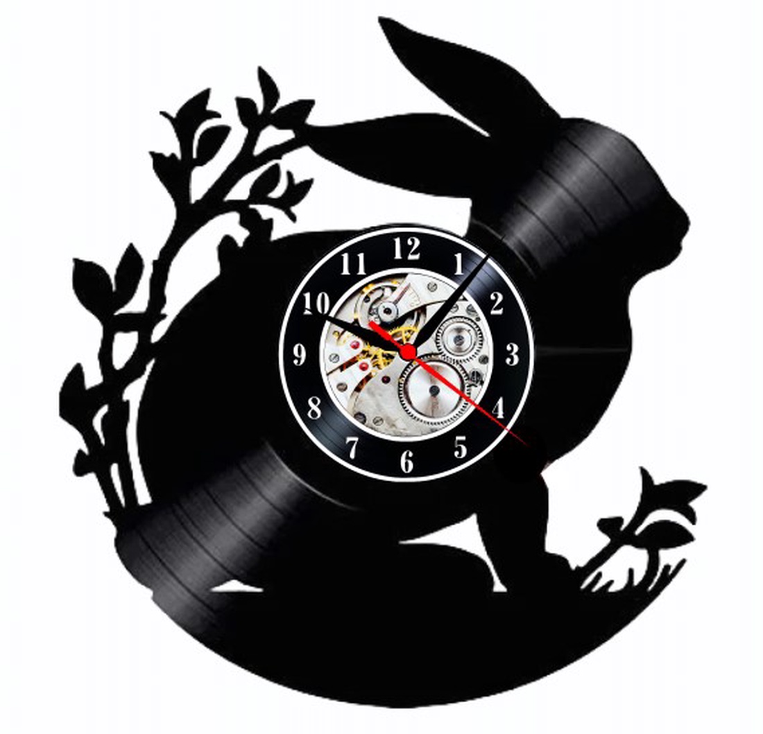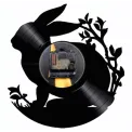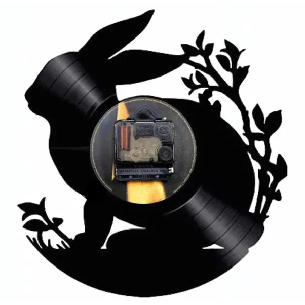"Redescoperiți farmecul vintage și inocența copilăriei cu acest ceas de perete unic, creat manual dintr-un disc de vinil autentic. Protagonistul acestui obiect decorativ este un iepuraș jucăuș, a cărui siluetă este decupată cu măiestrie din suprafața lucioasă a vinilului.