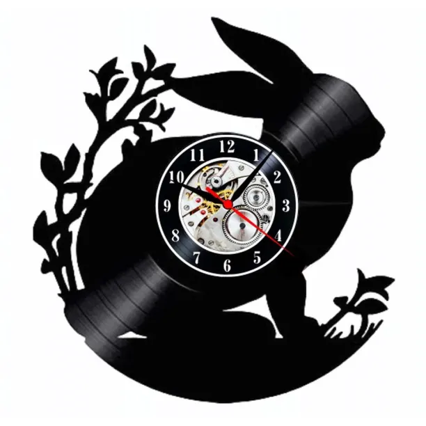 Acest ceas îmbină nostalgia muzicii analogice cu un design modern și ludic. Silueta iepurașului, decupată cu precizie, creează un joc fascinant de umbre pe perete, în timp ce discul negru strălucitor oferă un contrast elegant cu orice decor.