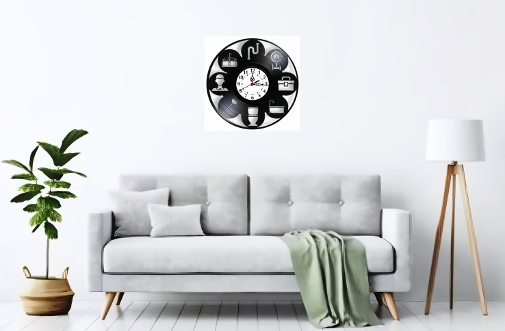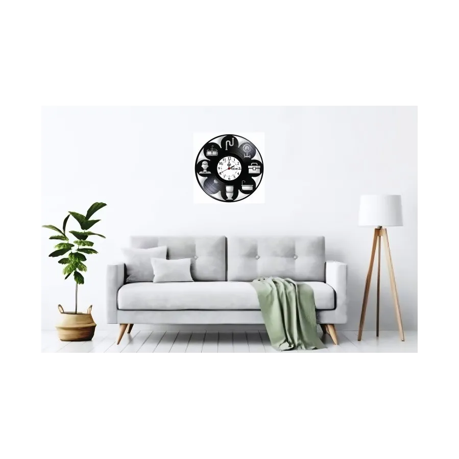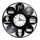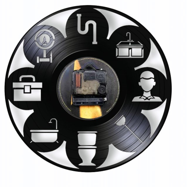 Descoperiți piesa perfectă, funcțională și plină de caracter, pentru atelierul, biroul sau showroom-ul oricărui profesionist în instalații! Acest ceas de perete este creat manual dintr-un disc de vinil autentic și reciclat, transformat cu măiestrie într-un accesoriu funcțional care celebrează meseria esențială de instalator. Este o piesă care îmbină nostalgia muzicii analogice cu precizia și rigoarea cerute de acest domeniu tehnic, aducând un omagiu vizual muncii de zi cu zi.