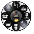 Cadranul central, elegant și ușor de citit, este înconjurat de aceste simboluri care definesc profesia. Contrastul puternic dintre negrul profund al discului de vinil și detaliile decupate creează un impact vizual profesional și modern, atrăgând imediat privirile vizitatorilor sau clienților și subliniind mândria profesională.