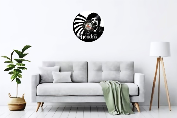 LEGENDĂ MUZICALĂ ÎN TIMP: CEAS DE PERETE JIMI HENDRIX DIN VINIL