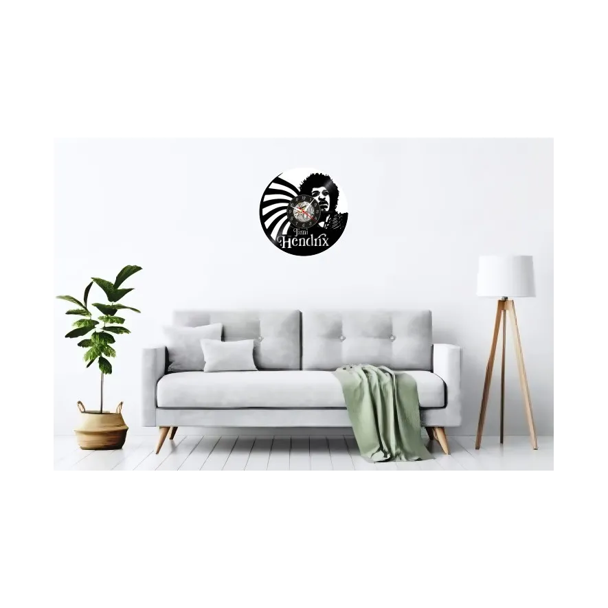 Un tribut spectaculos adus unuia dintre cei mai influenți artiști ai muzicii rock, acest ceas de perete creat dintr-un disc de vinil autentic captează esența și spiritul revoluționar al lui Jimi Hendrix. O piesă de colecție care transformă un material emblematic pentru muzică într-o operă de artă funcțională, celebrând un geniu care a rescris regulile chitarei electrice.