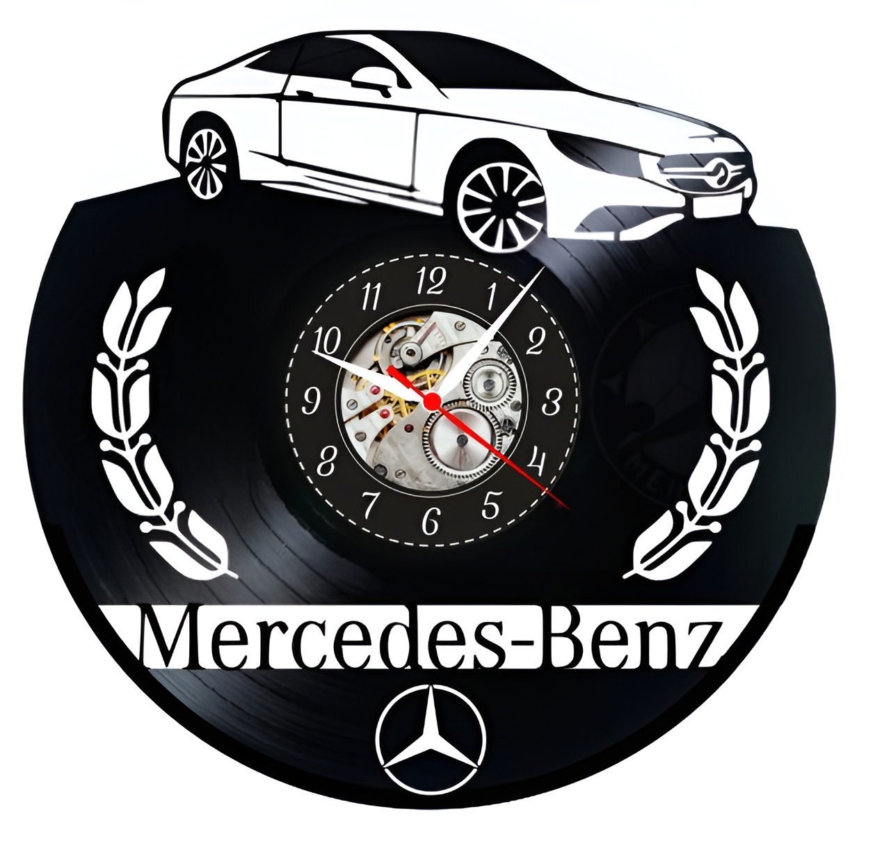 Fiecare ceas de perete din vinil Mercedes este o creație unică, realizată manual cu atenție la cele mai mici detalii. Finisajele atent lucrate manual evidențiază fiecare detaliu al designului, transformând un simplu disc de vinil într-o operă de artă funcțională. Prin această tehnică, păstrăm caracterul vintage al materialului original și adăugăm o notă de lux modernă prin designul elegant Mercedes.