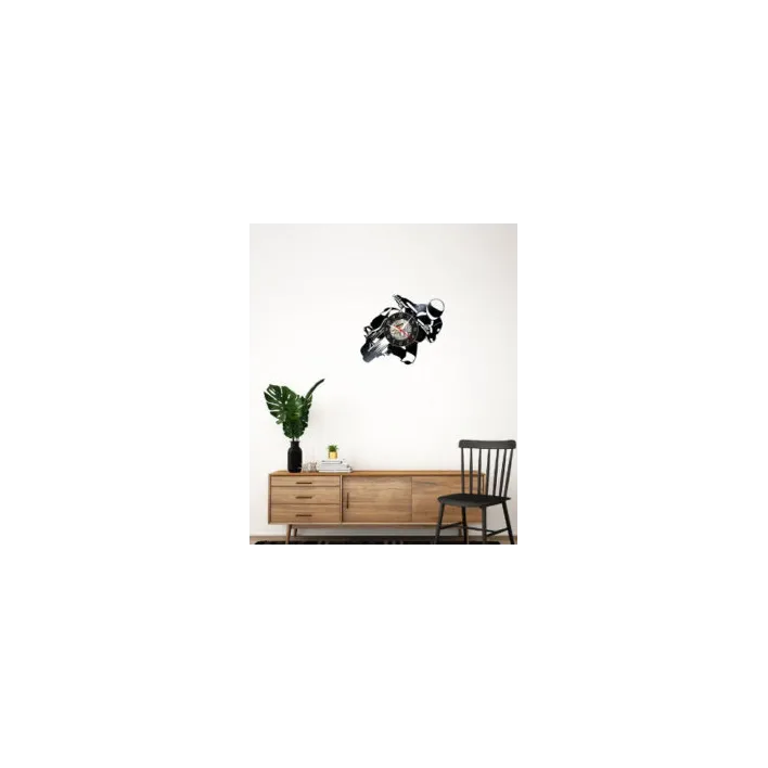 **Ceas de Perete din Disc Vinil – “Motociclist în Cursă” – Lucrare Artizanală pentru Pasionații de Motociclism**