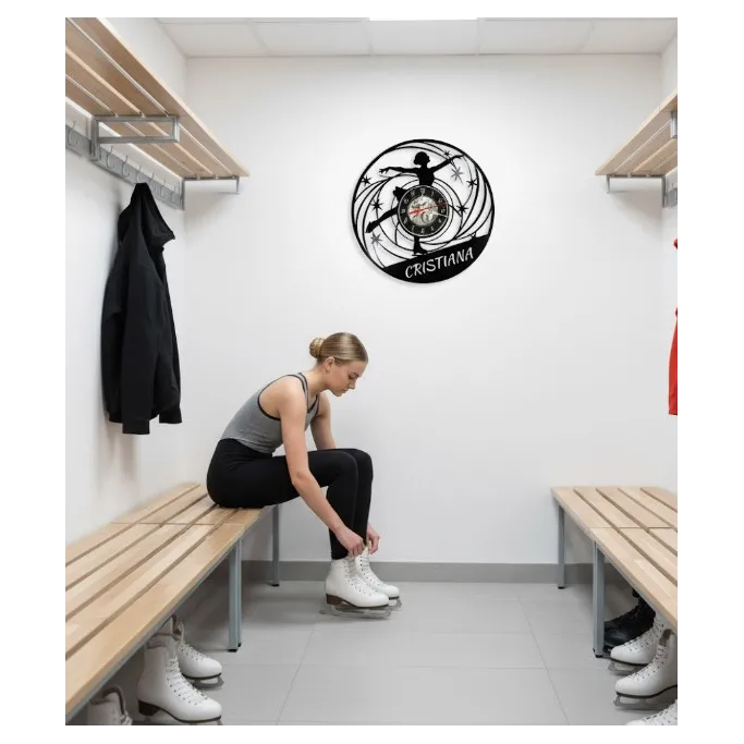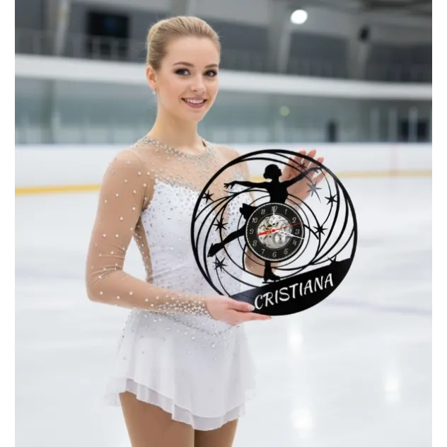 Această operă de artă elegantă și rafinată celebrează grația, frumusețea și disciplina riguroasă a patinajului artistic cu un design poetic ce captează magia dansului pe gheață. Ceasul Ice Skating Dreams este sculptat manual dintr-un disc de vinil autentic (LP), transformat într-un simbol vizual al mișcării, echilibrului și muzicalității. Este mai mult decât un simplu cronometru; este o declarație de stil, un omagiu personal și un element de decor esențial pentru orice spațiu dedicat excelenței sportive și estetice.