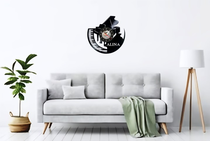 ARMONIA PERSONALIZATĂ: Ceas de perete din vinil în formă de pian