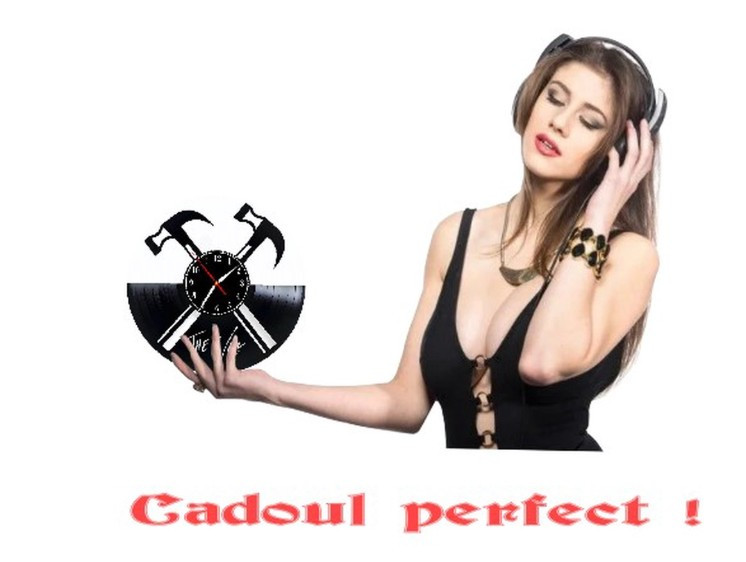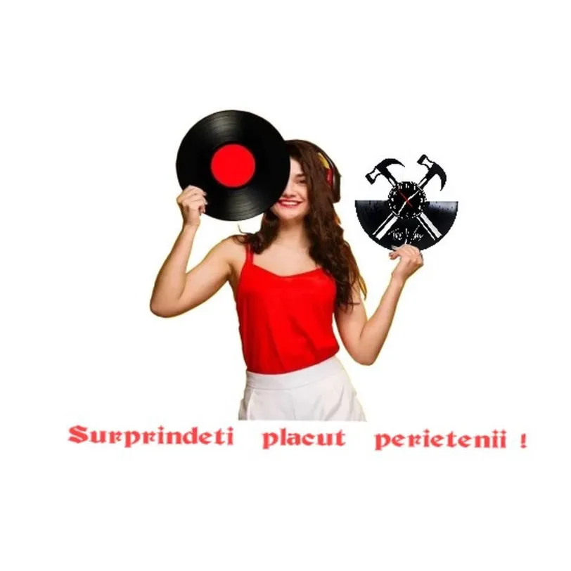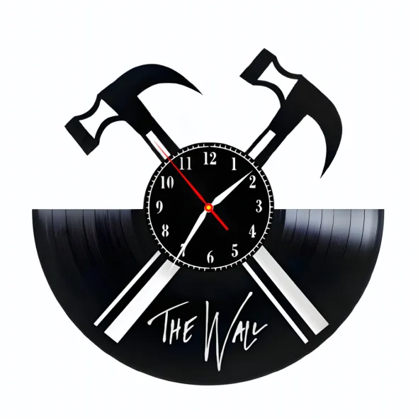 Descriere cu mesaj și muzică manifest: Acest ceas de perete este un omagiu grafic adus uneia dintre cele mai iconice creații muzicale: “The Wall” de la Pink Floyd. Designul din vinil, cu două ciocane încrucișate în fundal și titlul THE WALL în fontul recognoscibil al albumului, amintește de forța vizuală și tematică a capodoperei. Ceasul din centru, sobru și clar, pare să “ticăie” în ritmul unui protest silențios împotriva conformismului.