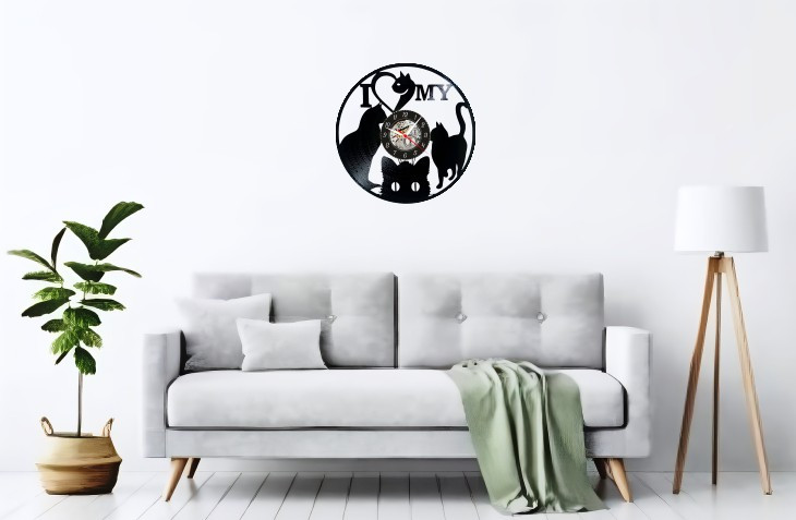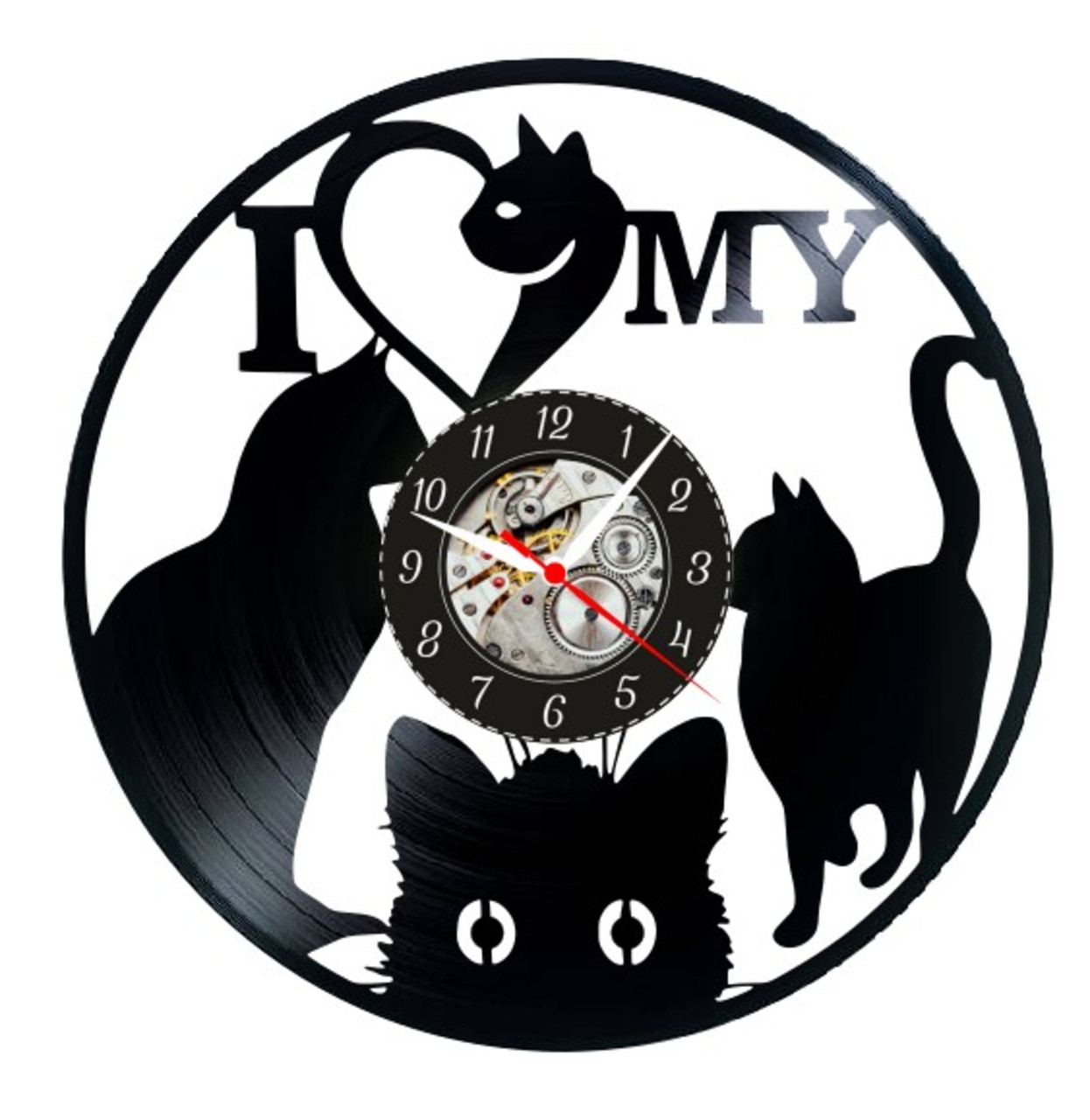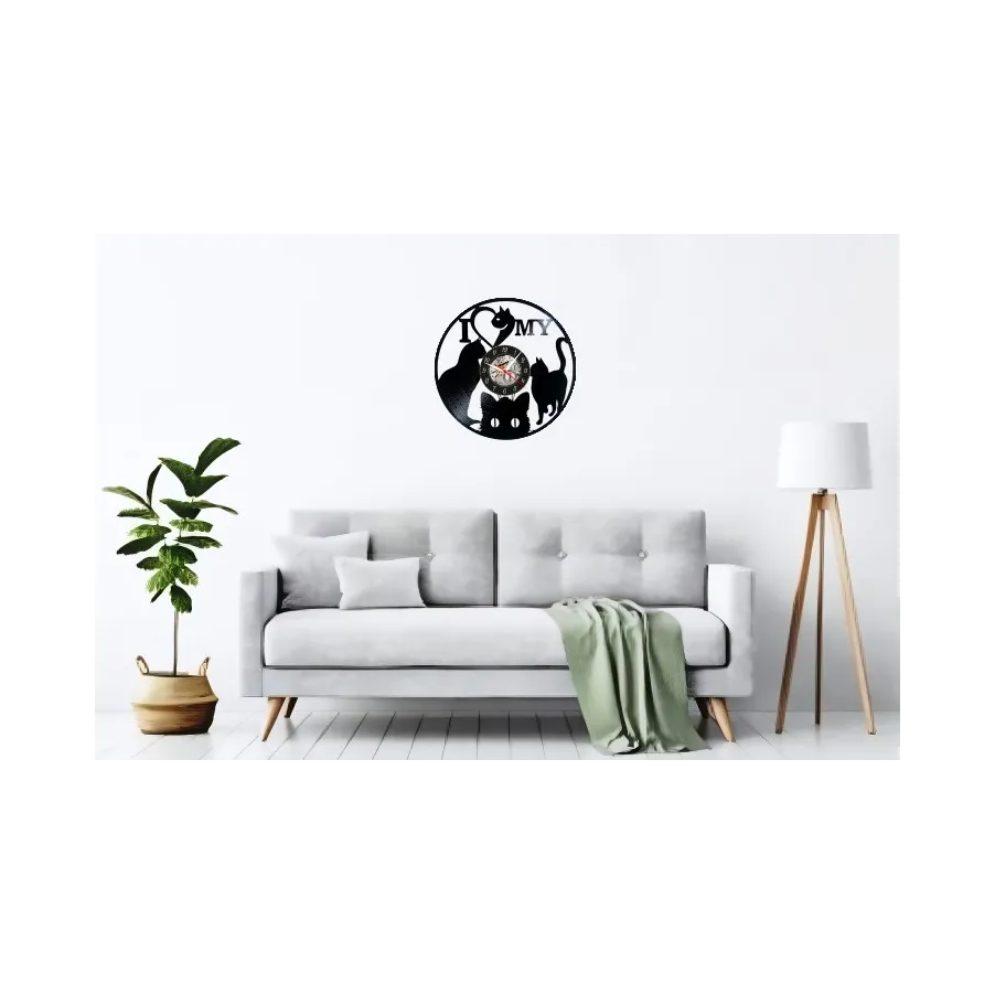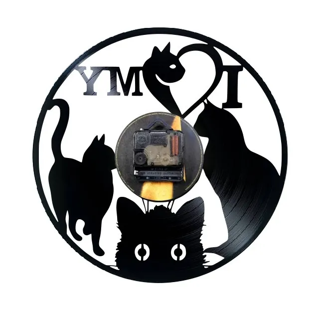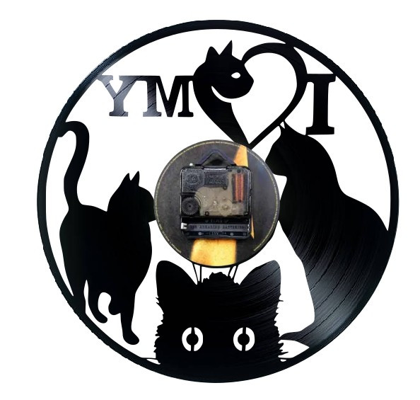 # Ceas de Perete cu Pisici din Disc de Vinil
