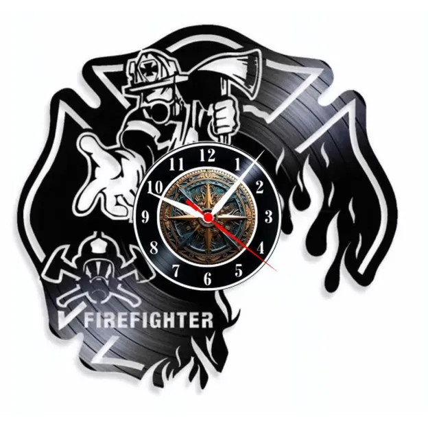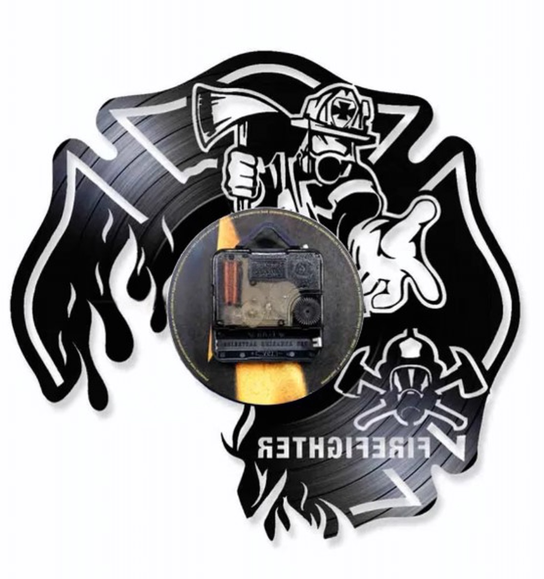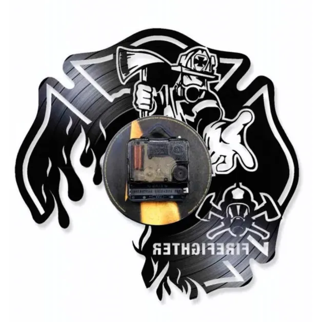 Transformăm nostalgia muzicii în artă funcțională cu acest ceas de perete unic, realizat manual dintr-un disc de vinil vintage, dedicat curajoșilor pompieri. Fiecare element al design-ului spune povestea acestei nobile profesii.