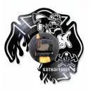 Perfect pentru decorarea unei secții de pompieri, a unui birou sau a casei unui pasionat de această nobilă meserie, ceasul măsoară 30 cm în diametru și este prevăzut cu un sistem solid de prindere pe perete.