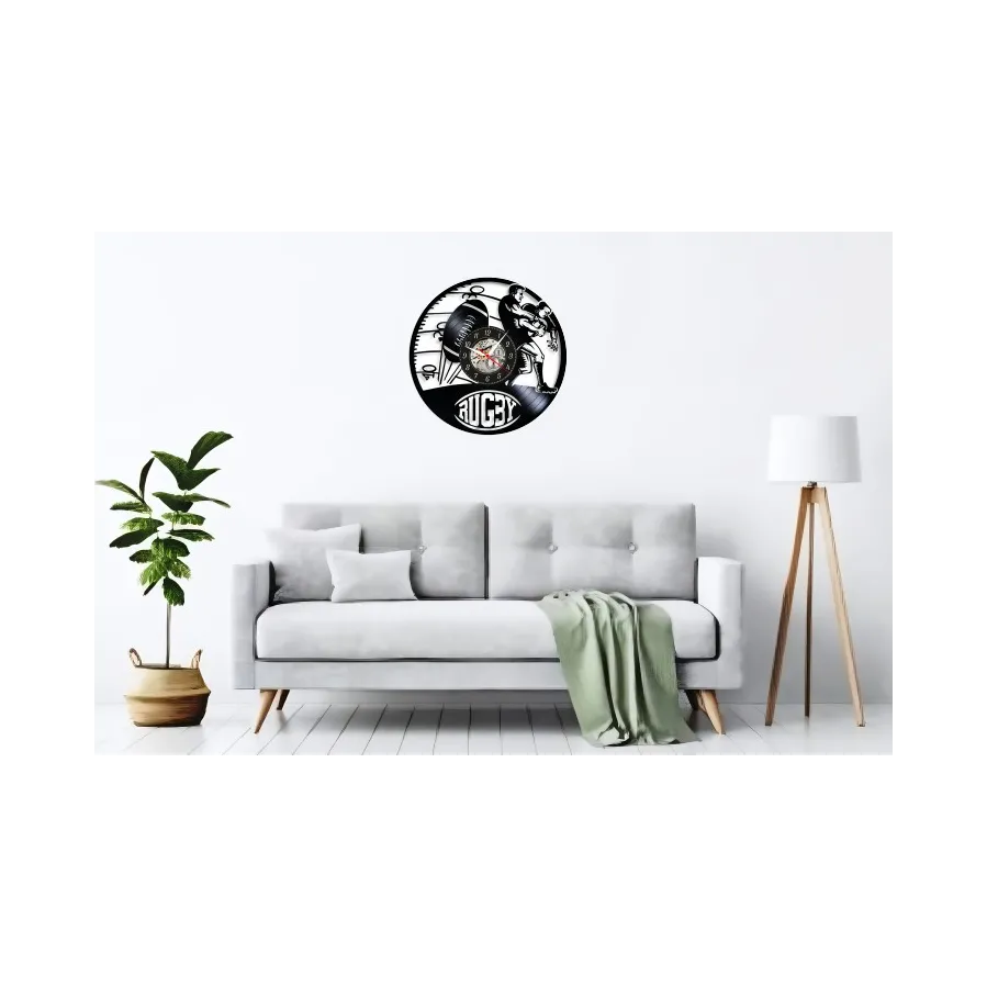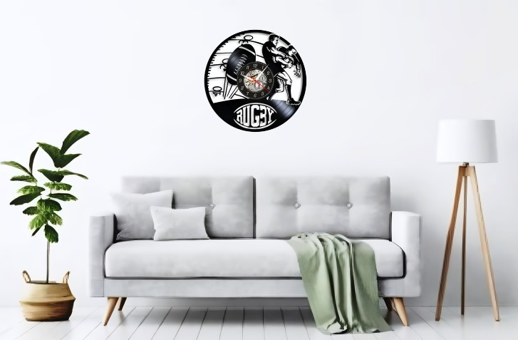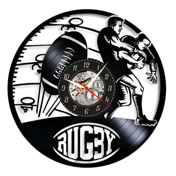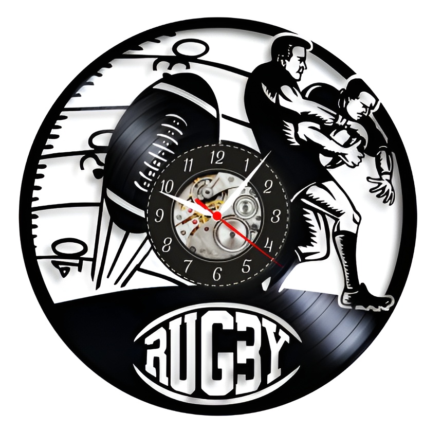 Celebrează spiritul rugby-ului cu acest ceas de perete dinamic, meșteșugit cu meticulozitate dintr-un disc de vinil autentic. Acest cronometru distinctiv captează energia, pasiunea și camaraderia sportului, transformând un disc vintage într-o piesă funcțională de memorabilia sportivă și artă murală.