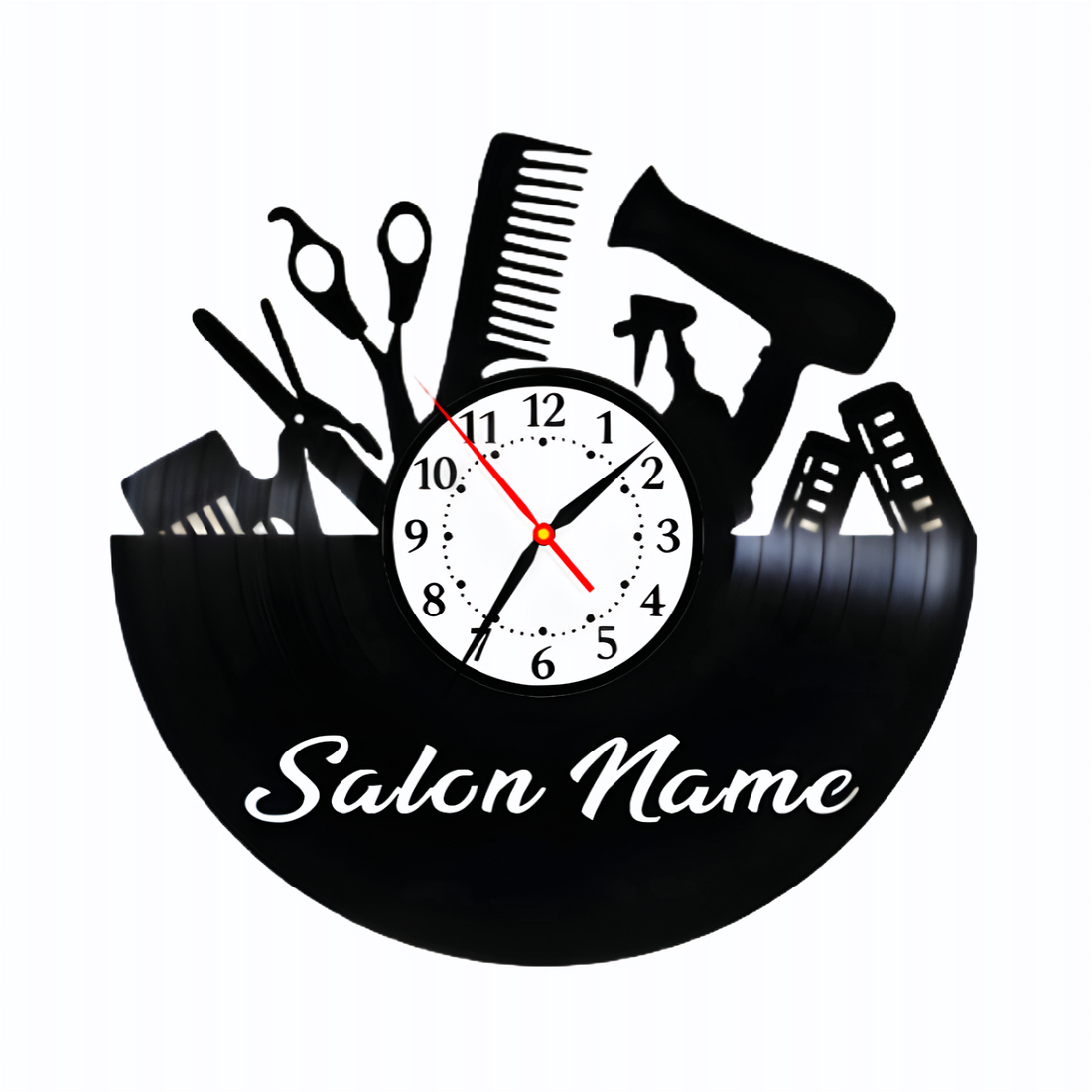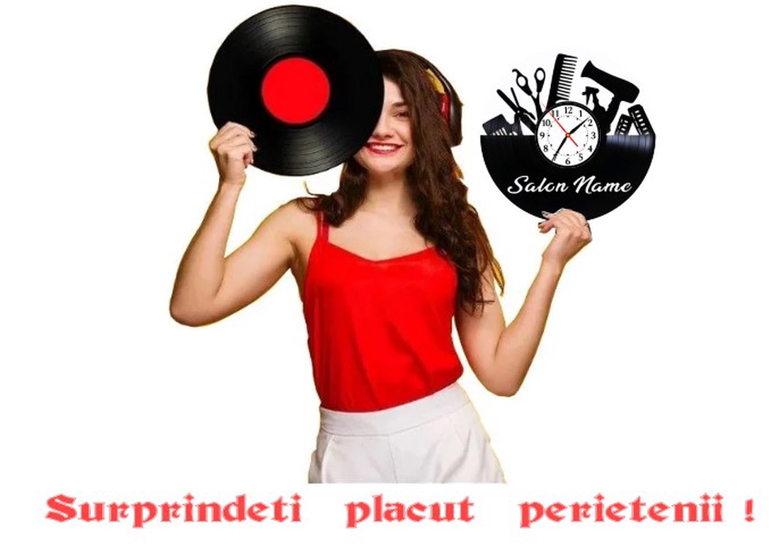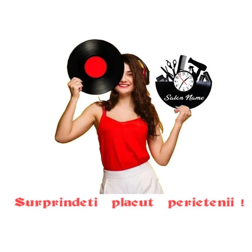 Descoperă noul ceas inovator creat special pentru pasionații de muzică și frumusețe: ceasul realizat dintr-un disc de vinil lucrare manual, ce se potrivește perfect într-un salon de coafură modern.