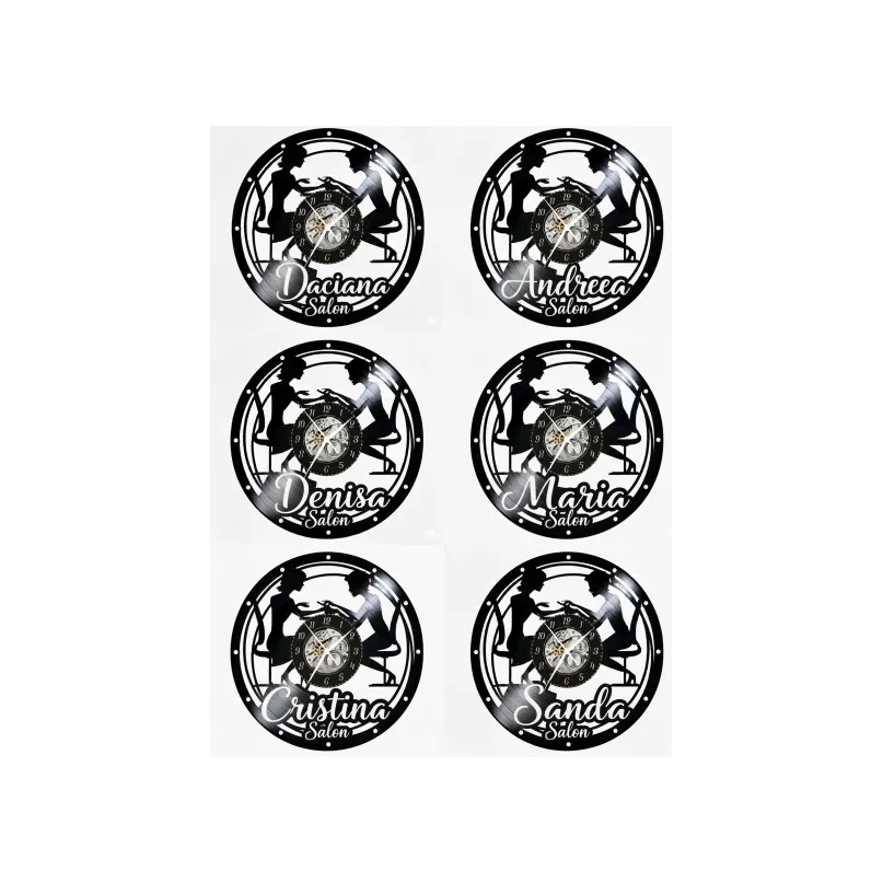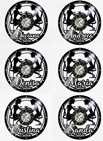 Această colecție de ceasuri elegante celebrează arta, precizia și rafinamentul manichiurii, transformând un simplu decor într-o piesă centrală, plină de personalitate. Ceasul „Manicure Salon” este sculptat manual dintr-un disc de vinil autentic (LP), un material cu o bogată istorie artistică, transformat acum într-un omagiu vizual adus frumuseții și stilului. Este mai mult decât un simplu cronometru; este o declarație de branding sofisticată, o notă de eleganță și un element de decor care subliniază profesionalismul și atmosfera relaxantă a salonului dumneavoastră.