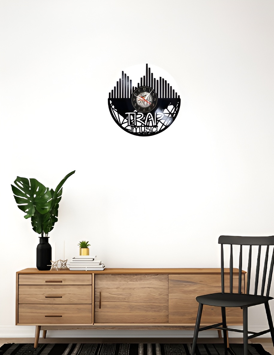 **Ceas de Perete “TRAP MUSIC” – Artă Urbană din Disc de Vinil**