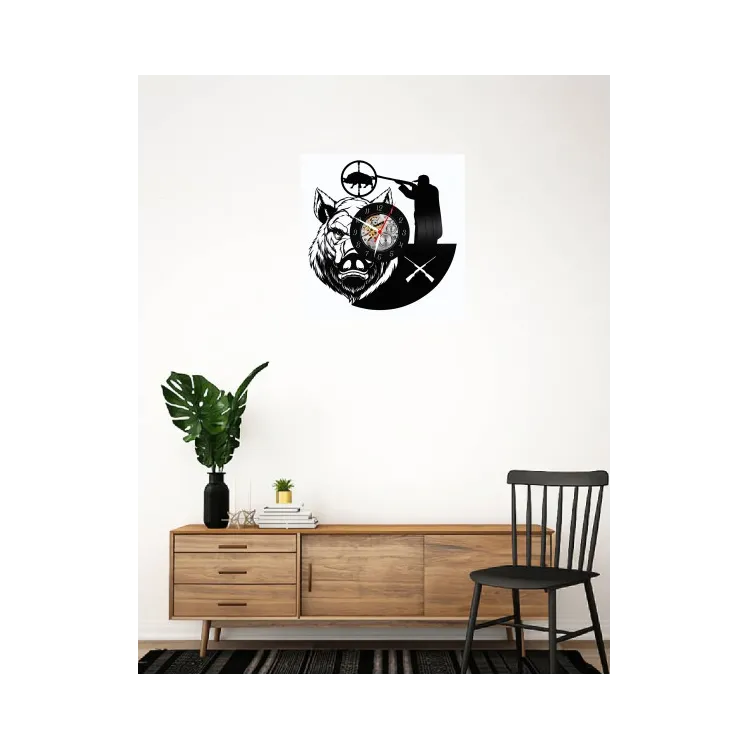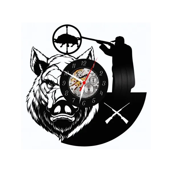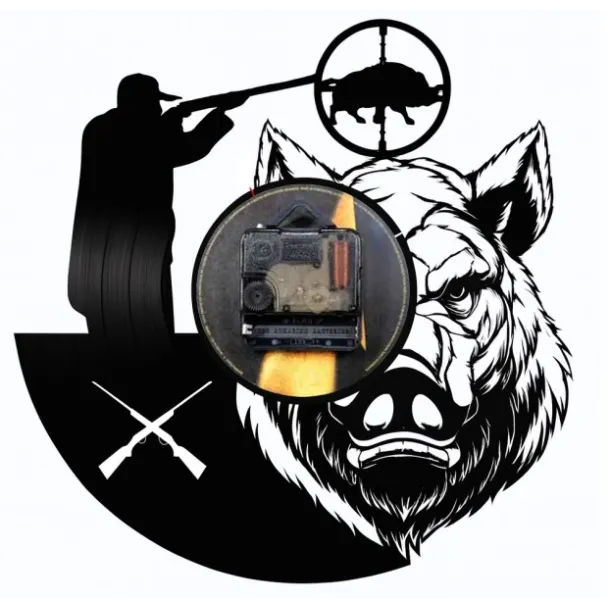 Un tribut vizual profund și respectuos adus tradiției nobile a vânătorii, ceasul de perete „Wild Boar Hunting” este o piesă decorativă cu o personalitate puternică, realizată manual dintr-un disc de vinil autentic (LP). Această operă de artă funcțională transformă un material nostalgic într-o scenă dramatică și simbolică de vânătoare, evocând adrenalina, respectul profund pentru natură, răbdarea și, nu în ultimul rând, măiestria artizanului.