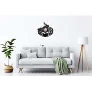 Această capodoperă handmade captează spiritul rebel și libertatea absolută a motociclistului pasionat. Sculptat artistic dintr-un disc de vinil autentic, designul prezintă o motocicletă chopper detaliată, înconjurată de aripi puternice ce simbolizează viteza și zborul pe șosele.